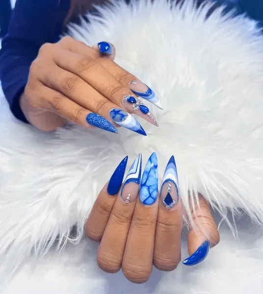 Stiletto nagels zijn perfect voor luxe designs. De vorm vraagt om iets bijzonders.