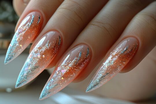 Stiletto nagels met Inlay nagels of Nailart nagels